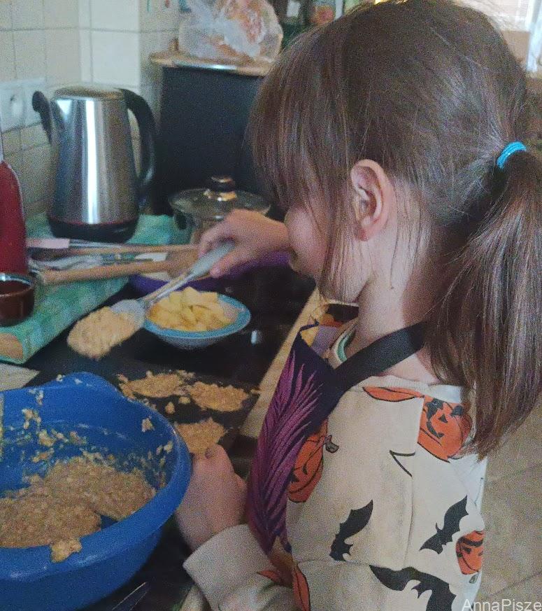 Calineczka chętnie pomaga w kuchni, choć jeść już niekoniecznie ma chęć 🙂